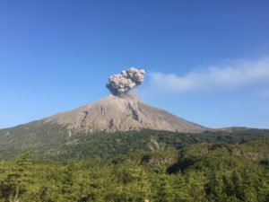 朝から橋を渡って桜島に上陸して左回りで湯之平展望台を目指します。